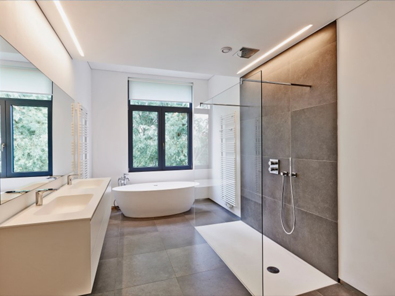 Rénovation complète d'une salle de bain à St-Lambert en collaboration avec notre équipe complète. Designer, plomberie, électricité, menuisiers, poseurs de céramique, tireur de joint, peintres et installateur de porte de verre. Travaux de rénovation de salle de bain effectués à St-Lambert sur la rive-sud de Montréal.